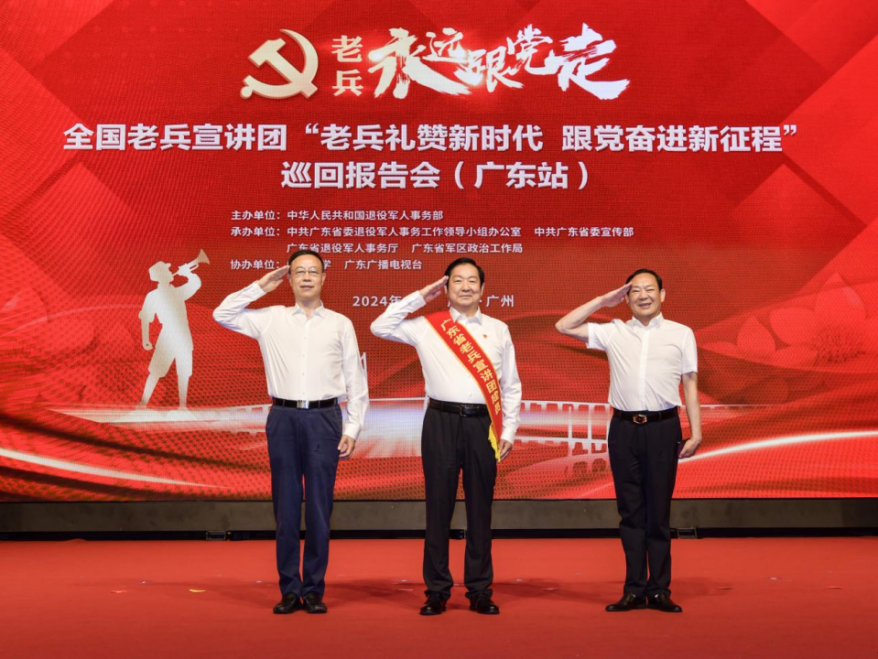 該活動由退役軍人事務部主辦,中共廣東省委退役軍人事務工作領導小組辦公室、中共廣東省委宣傳部、廣東省退役軍人事務廳、廣東省軍區政治工作局承辦。退役軍人事務部秘書局局長許富昌出席報告會并致辭。省退役軍人事務廳黨組書記、廳長王創,省委宣傳部二級巡視員肖海明,省軍區政治工作局大校主任陳煜昌出席報告會。