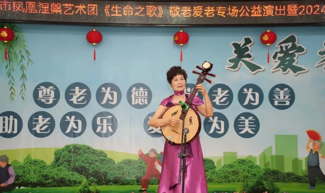 現(xiàn)場(chǎng),鳳凰涅槃藝術(shù)團(tuán)的成員們帶來了歌、舞、戲曲、二人轉(zhuǎn)表演和中阮、古箏、吉他、電吹管等樂器演奏。優(yōu)美的歌聲、精彩的舞蹈、惟妙惟肖的表演、悠揚(yáng)的樂器演奏,激起了現(xiàn)場(chǎng)陣陣掌聲,有的老人還跟著音樂節(jié)奏,打起了“節(jié)拍”,跟著哼起了歌曲。看到老人們露出開心的笑容和愉快地互動(dòng),演員們演得更加起勁,現(xiàn)場(chǎng)嘉賓和工作人員也由衷地感到欣慰。