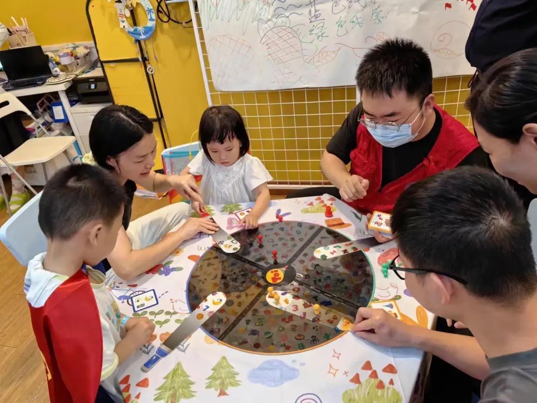 社工們都化身為“醫(yī)生”,為孩子們?cè)O(shè)計(jì)了各種有趣的游戲和科學(xué)實(shí)驗(yàn)。在“小手電尋寶桌游”中,家長與孩子們攜手合作,共同尋找隱藏的圖案;在“小小猴王鬧六一”環(huán)節(jié),孩子們化身為勇敢的“小小猴王”,各顯“神通”,挑戰(zhàn)各種難關(guān);在科學(xué)小實(shí)驗(yàn)區(qū),孩子們?cè)凇办o電”“空氣炮”“氣球大風(fēng)車”等實(shí)驗(yàn)中探索科學(xué)的奧秘……孩子們?cè)诩议L的陪伴下,穿梭于各個(gè)游戲點(diǎn)之間,體驗(yàn)著科學(xué)的樂趣和關(guān)愛的力量。游戲通關(guān)后,孩子們不僅獲得了專屬禮物,更感受到了來自社會(huì)的關(guān)懷與支持。
