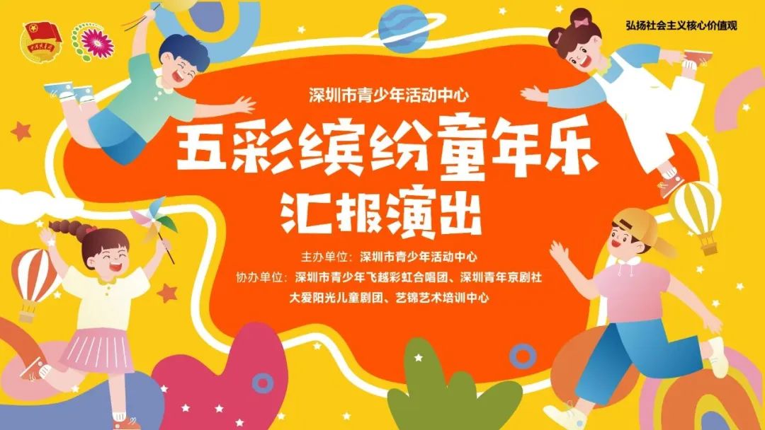 活動簡介:為豐富青少年兒童的文藝生活,展示青少年才藝和精神面貌,深圳市青少年活動中心將舉辦“五彩繽紛童年樂”匯演活動。充分利用和依托校外教育服務陣地,涵蓋童聲合唱、兒童歌舞、語言表演和京劇等豐富組合,讓孩子們在快樂的氛圍中展示才藝,打造一次歡樂、精彩、豐富的美好視聽盛宴。