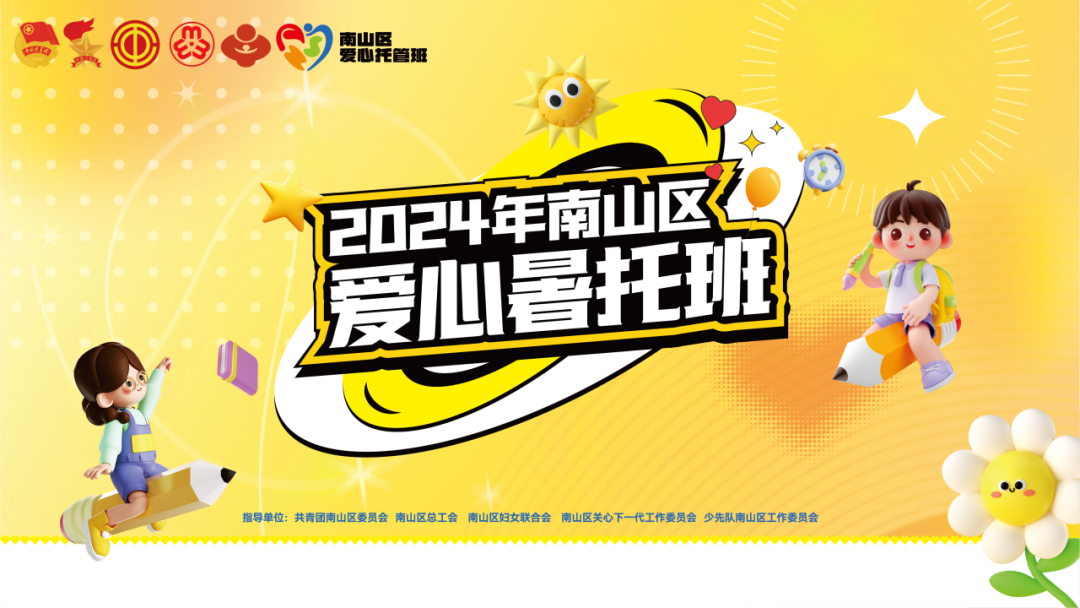 活動簡介:為緩解全區中小學生暑期“看護難”問題,引導和幫助青少年度過一個安全、快樂、有意義的假期,南山團區委、區總工會、區婦聯、區關工委、區少工委聯合各街道團工委開展2024年南山區“愛心暑托班”活動,為6-14歲青少年提供公益看護服務,在陪伴青少年自主學習基礎上,通過多樣化課程形式激發青少年的興趣和潛能,豐富青少年暑假生活。