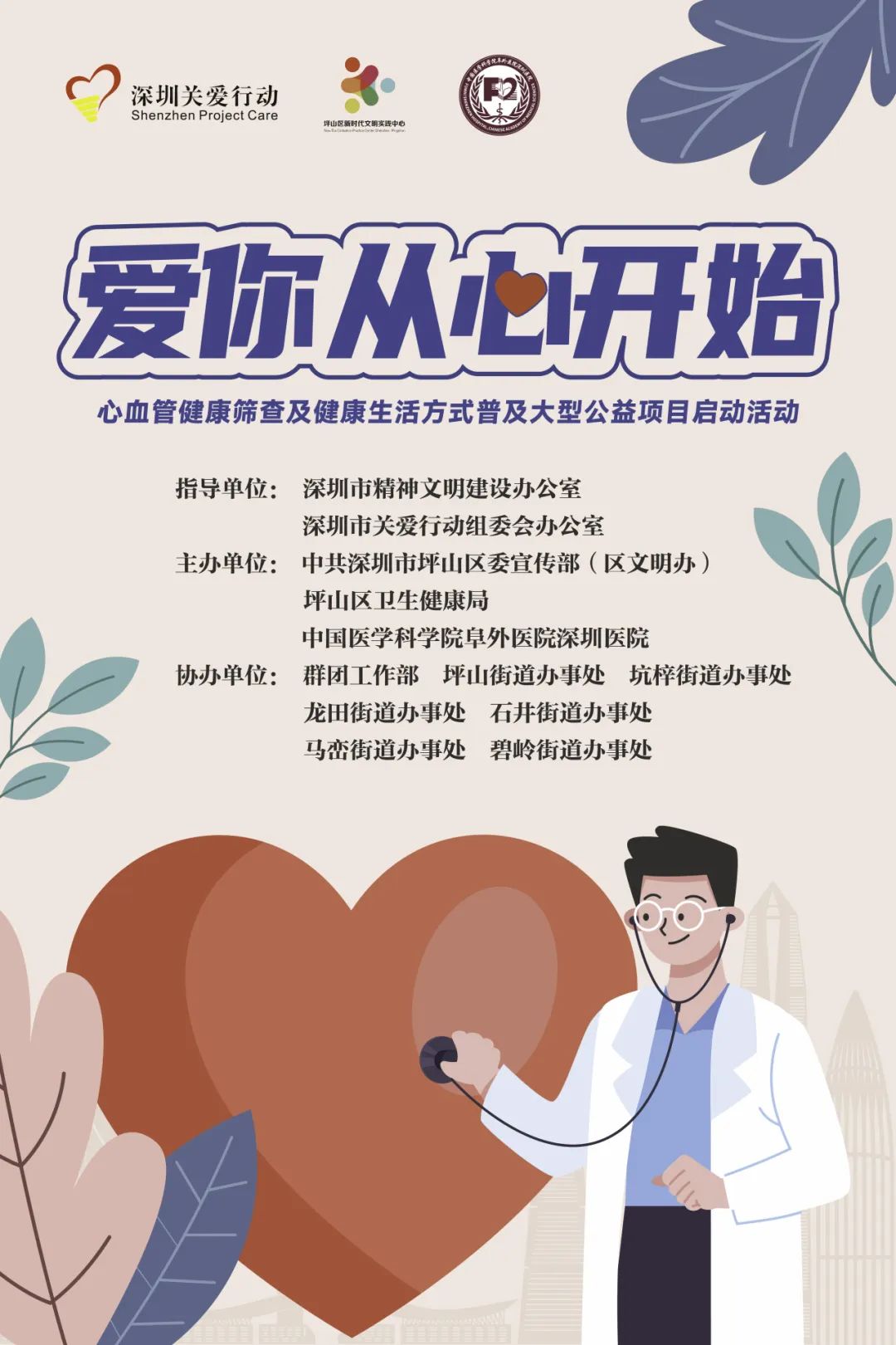 活動簡介:為貫徹落實黨中央關于加快推進“健康中國2030”建設的重大決策部署,坪山區(qū)文明辦聯(lián)合中國醫(yī)學科學院阜外醫(yī)院深圳醫(yī)院,依托國家心血管病中心、國家區(qū)域醫(yī)療中心“雙中心”平臺,合力推進深圳市心血管病防治中心、深圳市醫(yī)防融合項目,共同開展坪山區(qū)“愛你從心開始”心血管健康篩查及健康生活方式普及大型公益行動,面向轄區(qū)內(nèi)困難群體和重點領域人群,推出1000個心血管健康篩查服務名額及相關配套服務。