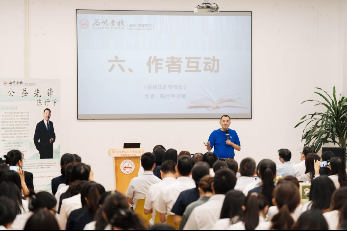 10月25日下午,寶安為明學校舉辦“閱讀沐初心,書香致未來”讀書分享會,中國公益達人陳行甲老師與全體教師共同分享了《在峽江的轉彎處》的創作歷程。會上,陳行甲受聘為學校的“教育公益領航導師”。