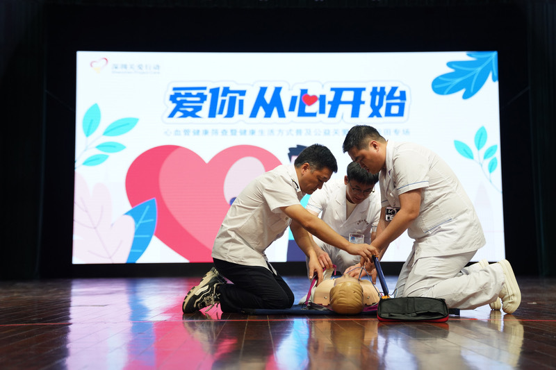 活動現(xiàn)場,健康服務“干貨”滿滿。國家心血管病中心、阜外醫(yī)院健康教育中心主任楊進剛教授,以及阜外醫(yī)院深圳醫(yī)院周圍血管外科主任陸京伯,分別就心血管健康管理、頸動脈健康等主題,進行了深入淺出、專業(yè)實用的科普講座,提升了現(xiàn)場聽眾的健康知識水平。醫(yī)護人員現(xiàn)場演示心肺復蘇(CPR)與自動體外除顫器(AED)使用方法,手把手指導實操,強化急救技能;專家團隊同步開展義診,為居民提供“一對一”健康咨詢。
