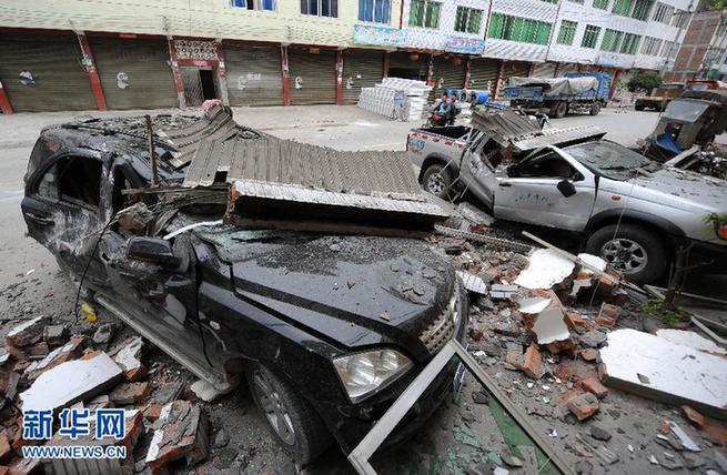 4月21日在四川省雅安市寶興縣靈關(guān)鎮(zhèn)拍攝的在地震中受損的車輛。來自民政部的消息,據(jù)四川省民政廳21日17時統(tǒng)計,四川蘆山7級地震已造成208人死亡、失蹤,其中184人死亡、24人失蹤,另有11826人受傷。新華社發(fā)(薛玉斌攝)